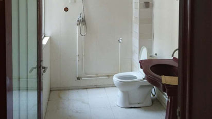 卫生间:卫生间贴砖无坡度,旧房卫生间比较极端,过于小或者过于大,空间利用性差,实用性不高,空间显得很压抑以及无无换气功能,防水用于刚性,易出现漏水现象